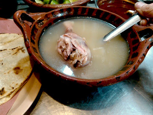 夕食はレボルシオン駅前の屋台で雌鶏のスープ。