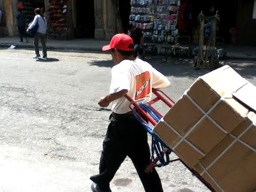 メルカドは狭い道でも容赦なく、大荷物のリアカーが突っ込んでくるので注意が必要。