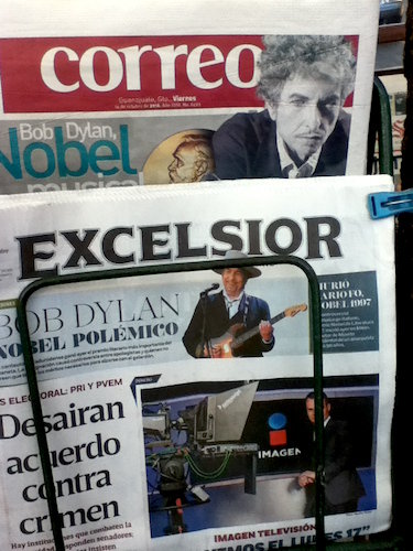 2日前、ノーベル文学賞に選ばれたボブ・ディランが新聞の一面に。