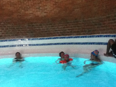 ロッカーで水着に着替えて、まずは生ぬるいプールへ。