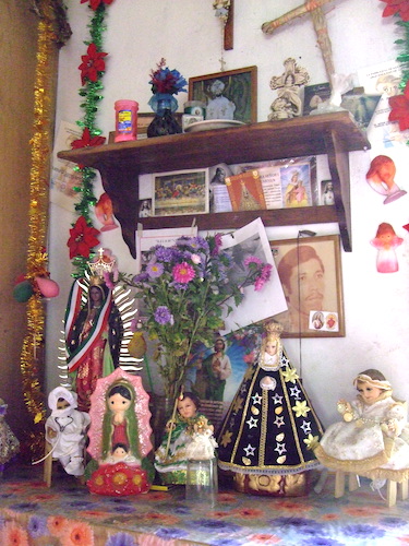 隅っこにあった祭壇。幸運が来そうなものは何でもありです。