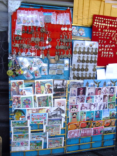 郵便局の入り口では絵葉書や封筒を売っている人がいます。
