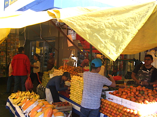 駅前のメルカド。毎朝この果物をこれだけ積み上げているようです。