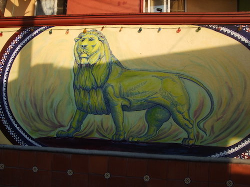 壁の謎のライオン壁画。この工房は大豪邸です。