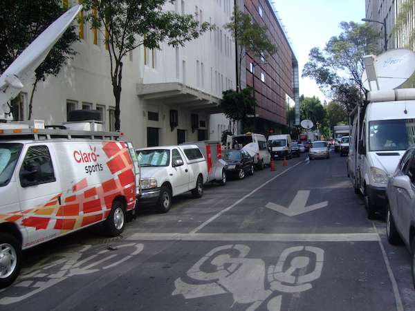 ソカロ周辺には夜の開票速報のためか、テレビ局の中継車だらけ。
