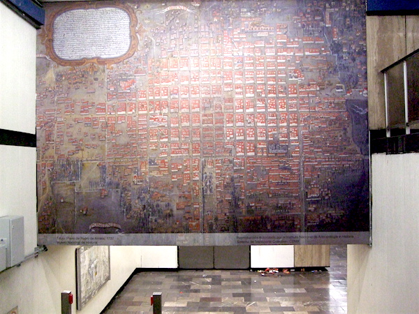 メトロのソカロ駅にある、スペイン占領下時代のセントロの地図。
