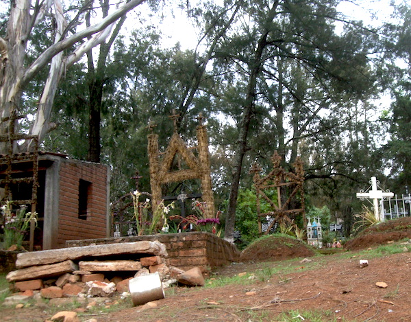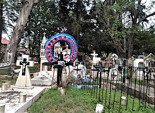 大きな墓地は死者の日には、鮮やかに彩られます。