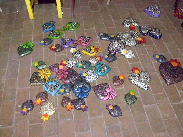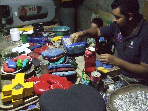 ミラグロを貼り付けるコラソンやクロスの木の彫像作業もここで。