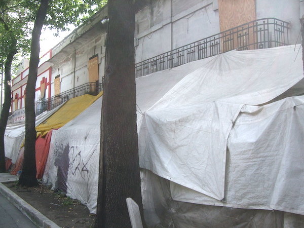 クアウテモク通りのドクトレス側はテントだらけ。(ローマ側は一切ない)