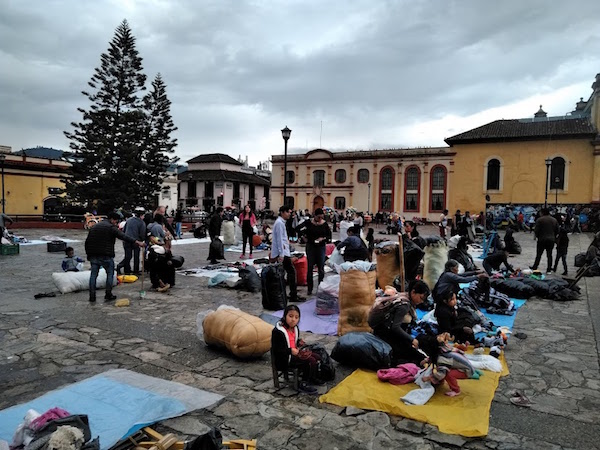 カテドラルの前の広場では夜に備えてインディヘナたちが出店準備。