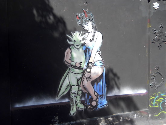 この文化施設の屋上は彼のステンシルだらけ。