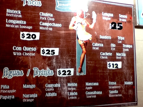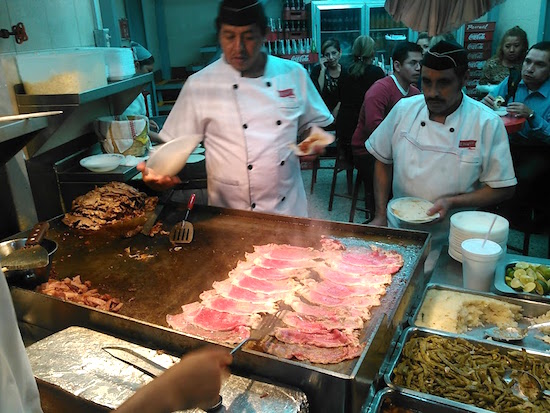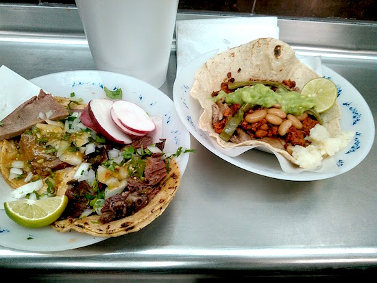 シンプルにビステク、パストール、レングアのタコス。
