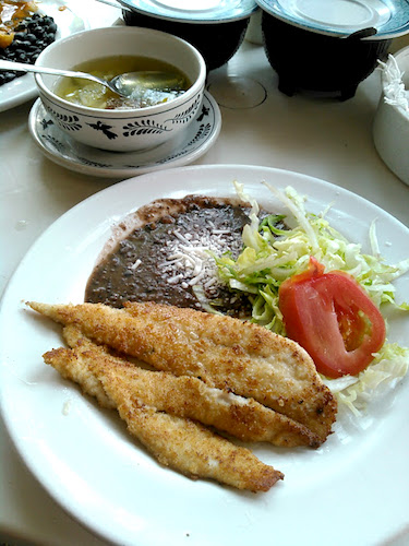 コミダコリーダ(定食)が安い。35ペソです。オーダーは白身魚のフライ。