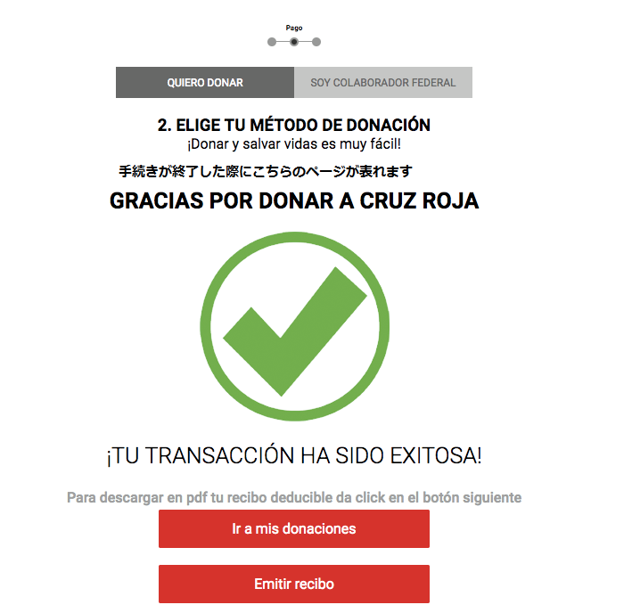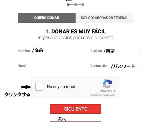 1、メキシコ赤十字社のHPに入り寄付用のアカウントを作成する(ステップ1を参照)