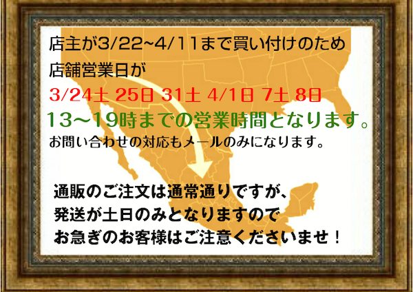 3/22~4/11まで買い付けのため、店舗営業日に加え